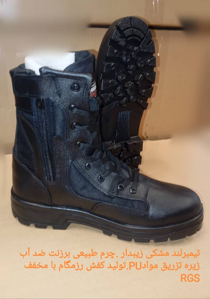 م ل=پوتین تیمبرلند مشکی. زیپدار . سایزبندی ۴۰ الی ۴۷ جنس =چرم طبیعی واکس خور مشکی.