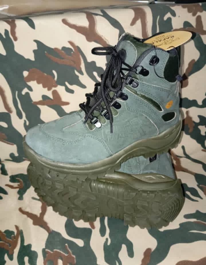 مدل نیم پوتین رافایل سبز.زیپدار. جنس رویه چرم طبیعی ،یک لایه کامل برزنت پشت مواد پی . ی سی(کاملا ضد آب)ابر آستر ۶میلی ۲لایه.نوع زیره= تزریق با مواد P U ،کم وزن و طبی.